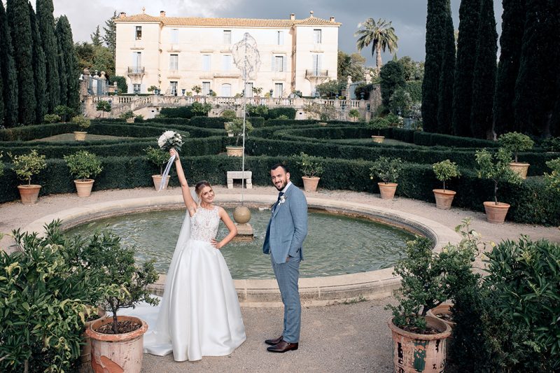 Le mariage s'est déroulé dans le cadre somptueux du château de Flaugergues avec son jardin à la française et sa célèbre orangerie.