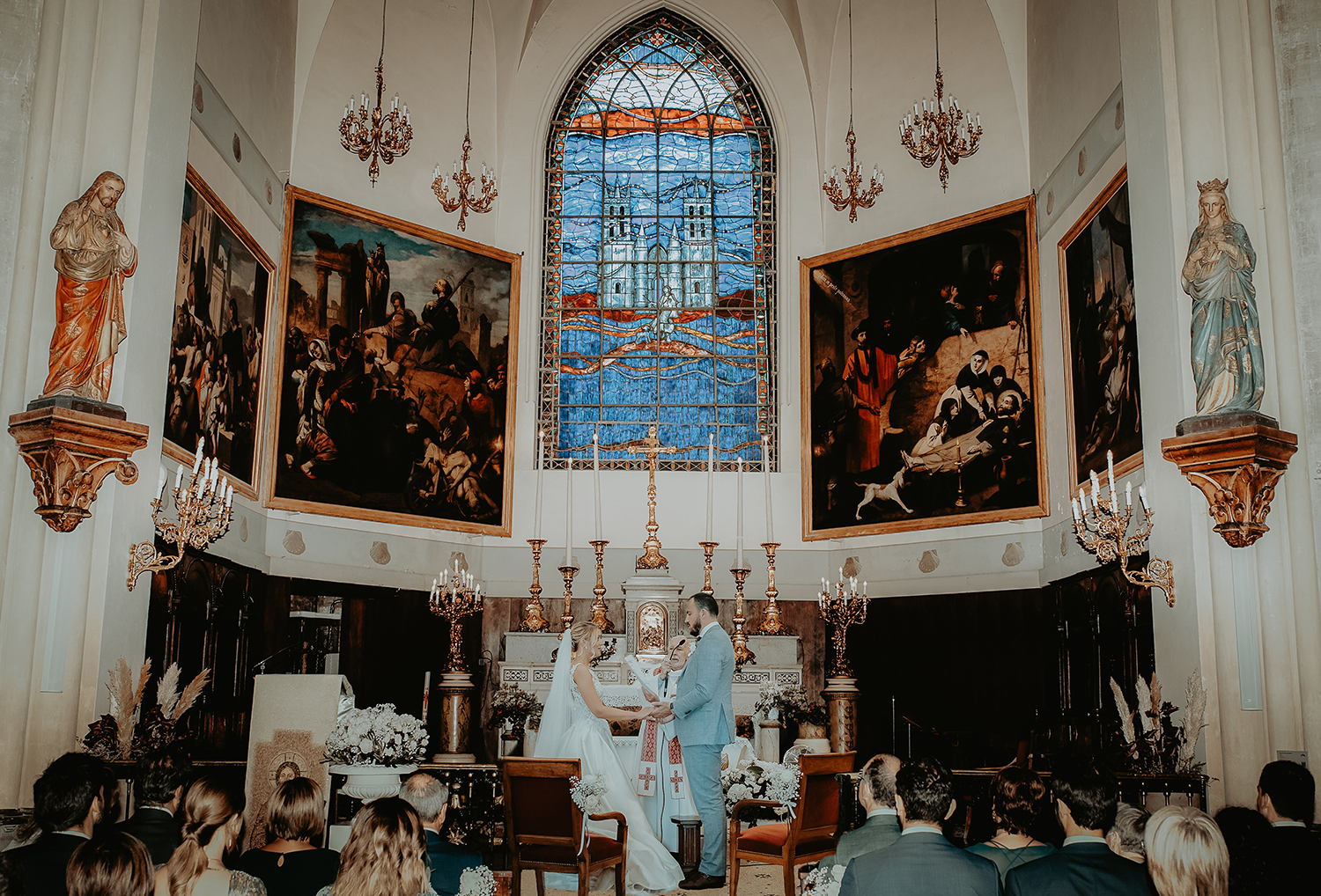 Le mariage s’est déroulé dans le cadre somptueux du château de Flaugergues avec son jardin à la française et sa célèbre orangerie.